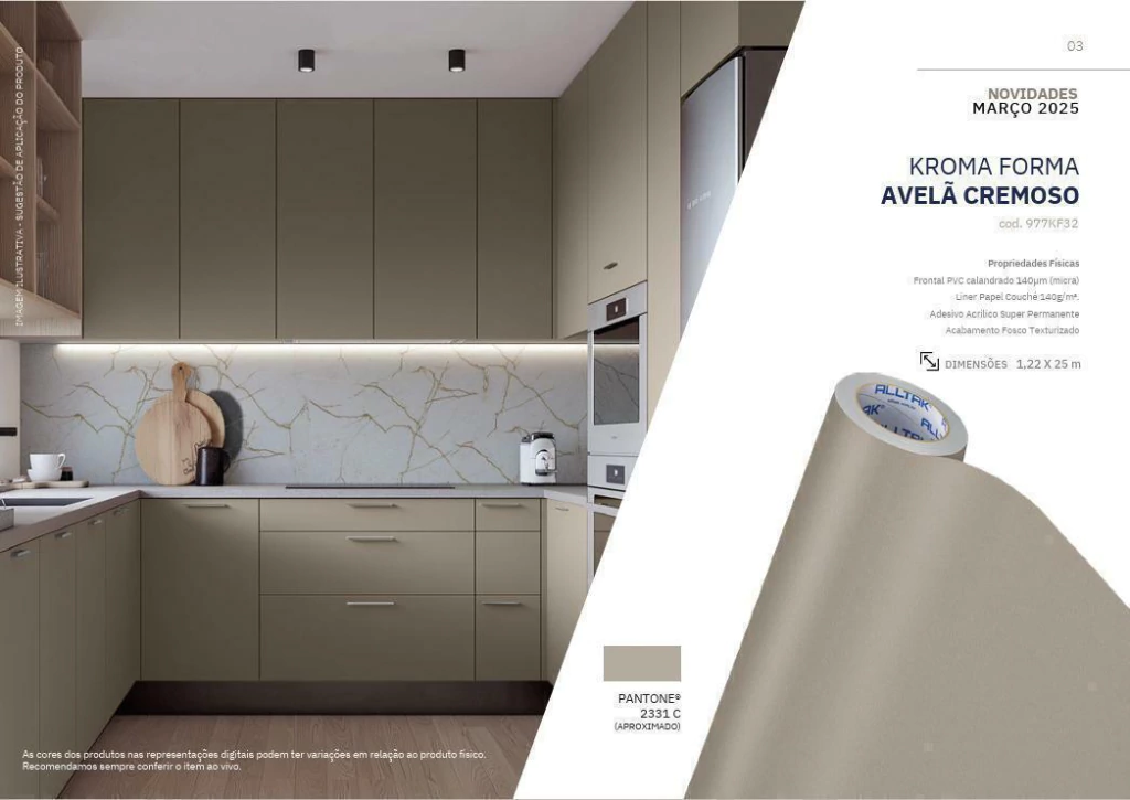 O Adesivo Decorativo Kroma pode ser aplicado em superfícies como paredes (exceto em locais com umidade constante, como banheiros), móveis, madeiras e outras superfícies lisas ou levemente curvas. A tecnologia de micro canais de ar integrada facilita uma aplicação isenta de bolhas, otimizando o tempo de instalação em até 50%. Certifique-se de que a superfície esteja limpa e seca antes da aplicação para garantir a melhor adesão e acabamento.