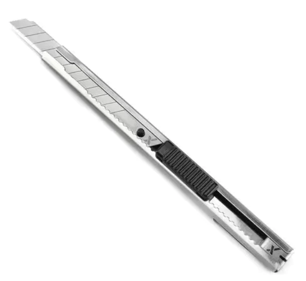 O Estilete Extra Fino Hobby 15-401 é a ferramenta ideal para quem trabalha com corte de vinil, papel, filmes adesivos ou artesanato. Com lâmina de 9mm em ângulo de 45° e corpo metálico super resistente, ele combina precisão extrema com durabilidade.